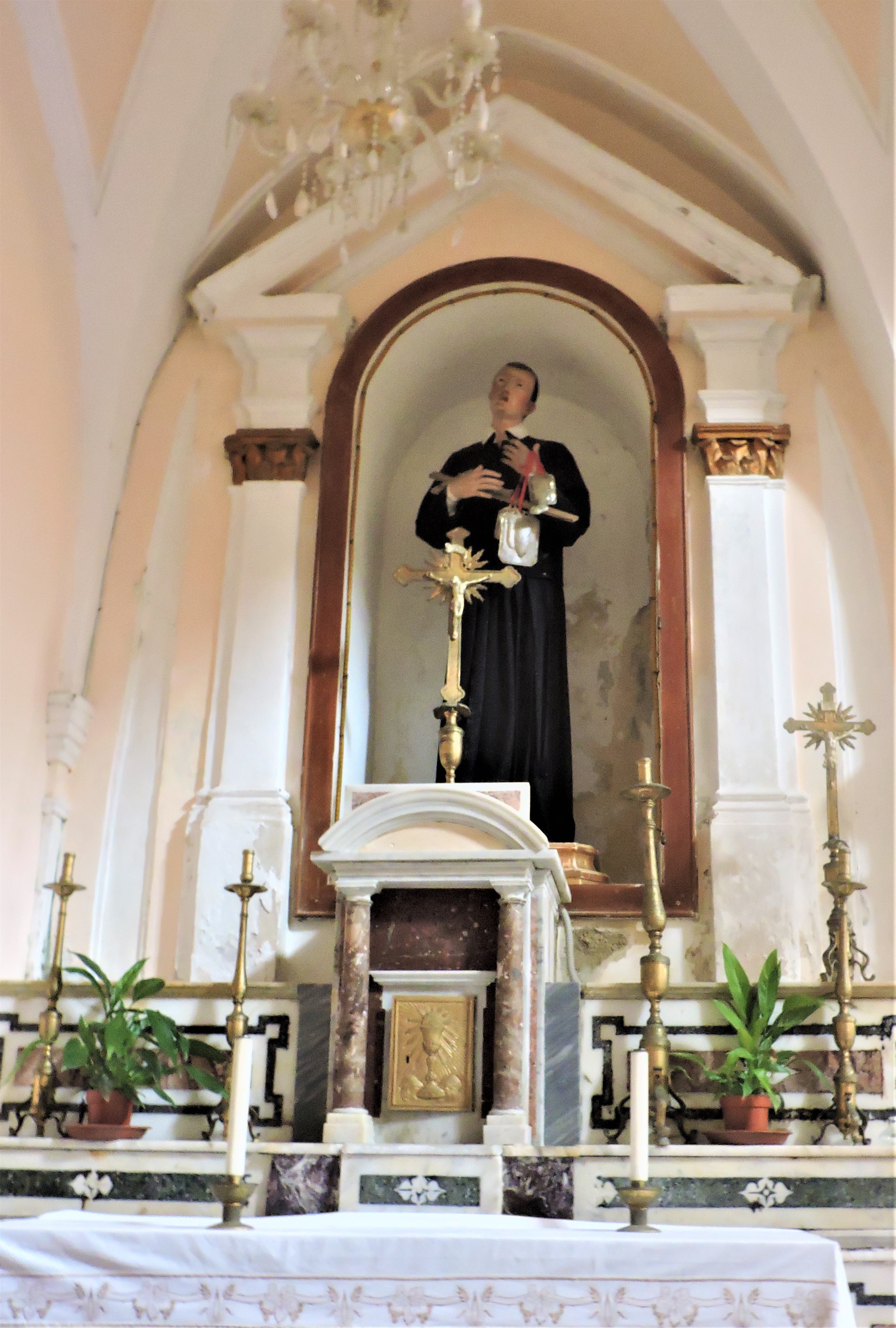 La parete terminale della chiesa ospita un ricco apparato ornamentale.